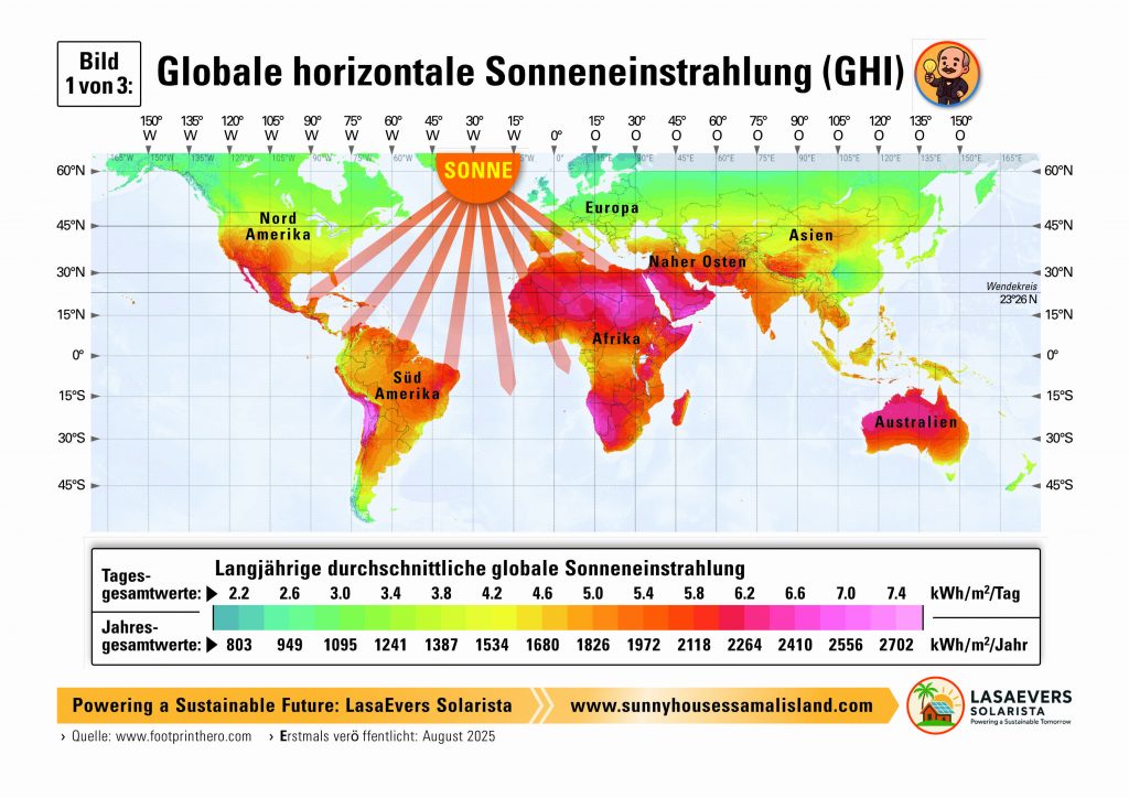Globale Horizontale Sonneneinstrahlung  (GHI) Erstellt von Thomas Schirmeier, unserem langjährigen Grafikdesigner in Starnberg, Deutschland.