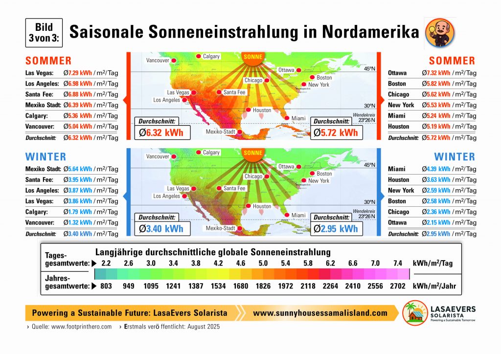 ☀️ Bild 3 : Sonneneinstrahlung in Nordamerika nach Jahreszeiten